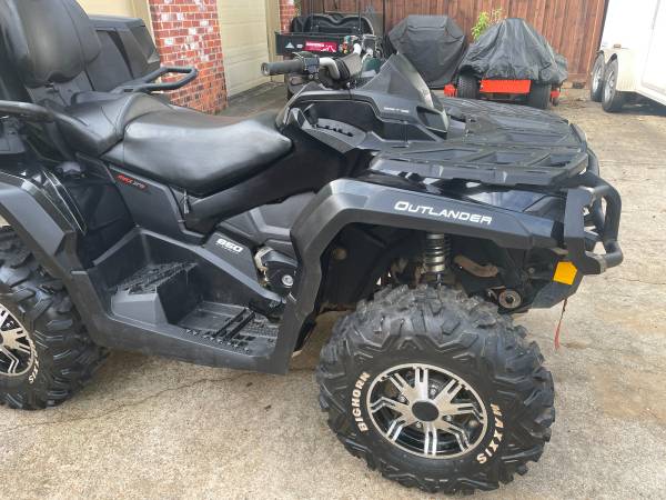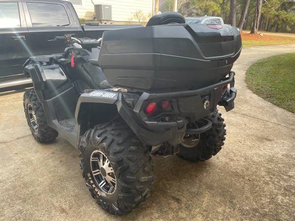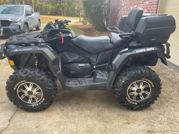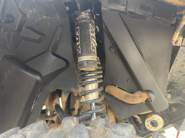 Features: Large rear cargo bin, 26" eight ply bighorn maxxi's tires, aluminum alloy wheels. Fox air shocks, factory 2500# winch. New battery. Includes camo cover and battery charger.