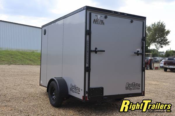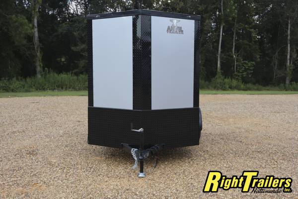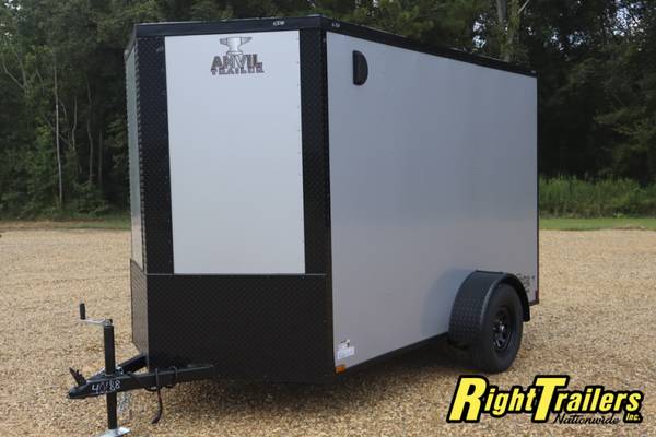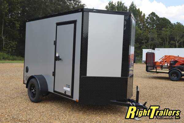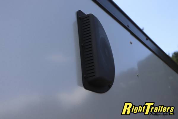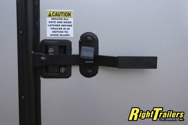All steel frame, 6'6" interior height, 3/8" plywood walls, 3/4" TREATED plywood floor, rear barn doors, side door, bar lock, drop axle, 15" tires, aluminum fenders, 24" stone guard, 12 V interior light, SIDE VENTS, LED LIGHTS, BAR LOCK ON REAR, TUBE ROOF BOWS, 16" OC WALLS, LINED ROOF, RADIAL TIRES, BLACK W/BLACKOUT PACKAGE